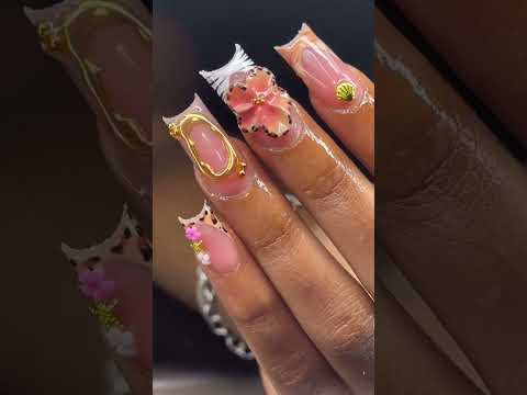 Acrylic nails with a French design and flower 🌺 #nailgelart #nails #simplenails