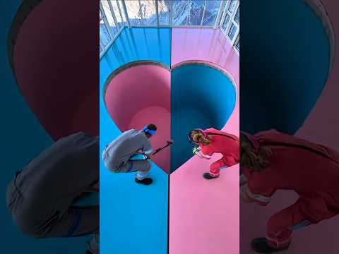 Blue vs Pink Floor Transformation! 😱 split heart epoxy floor #Shorts