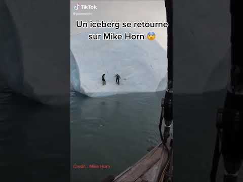 Un iceberg se retourne pendant que l'explorateur Mike Horn l'escalade