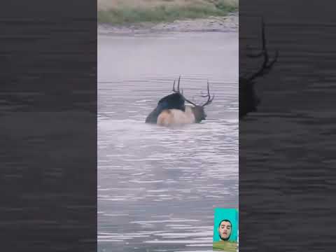 Grazelly bear attack on bull moose stuck in river #shorts #wildlife