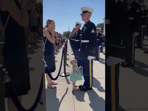 Tiny Girl Breaks Military Formation to Hug Her Dad 🥹🇺🇸 #militaryfamily #heartwarming