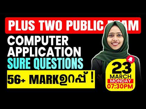 Plus Two Public Exam | Computer Application | Sure Questions | 56+ Mark Sure | Exam Winner