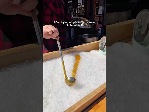 POV: trying maple taffy on snow in Montréal #montreal #montrealdowntown #montrealfood #mapletaffy