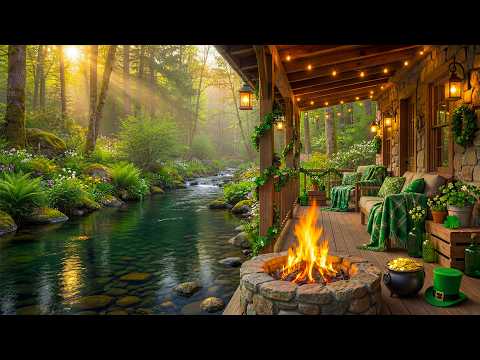 Peaceful St. Patrick’s Day Riverside Cabin Porch 🍀🔥 Fire Pit, Calm Water & Relaxing Nature Ambience