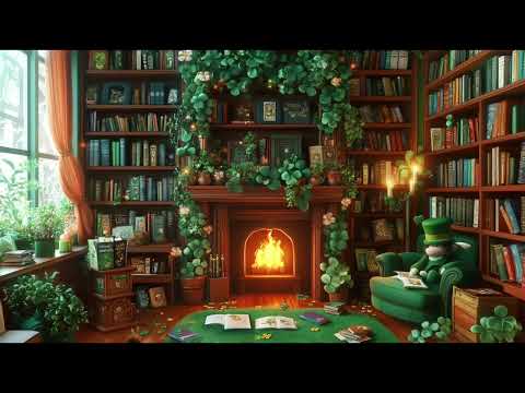 🍀 Cozy Leprechaun Library | St. Patrick’s Day Ambience in 4K with Crackling Fireplace 🔥📚
