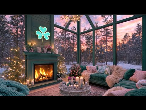 🍀 St Patrick’s Day Winter Sunset Cabin 💖 Cozy Fireplace Ambience