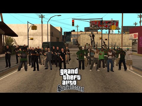 Grove Street and Los Varrios Aztecas vs Ballas and Vagos gang in GTA San Andreas