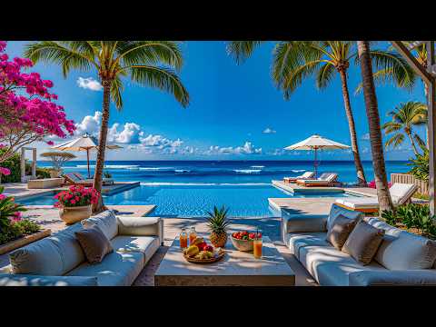 Elegant Morning Resort In Seaside | Cafe Jazz With Ocean Ambience & Wave Sound For Working, Relaxing