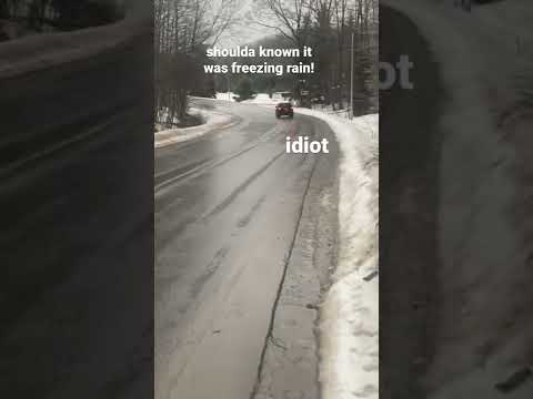 Idiot drives their jeep almost off the road because they were stupid to drive fast in freezing rain