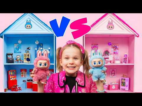 Maison de poupée rose ou bleue pour les jouets Labubu