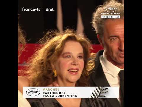 Arrivée de l'équipe de "Parthenope" par Paolo Sorrentino en bas des marches du Festival de Cannes