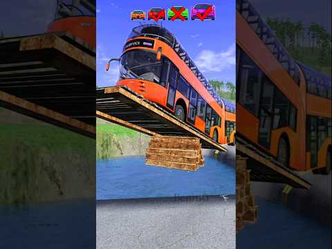 Mega Bus & Huge Truck vs Fragile Bridge - No Impossible Crossing! - BeamNG Drive #shorts