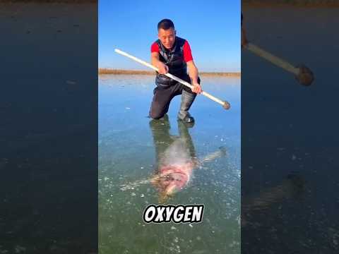 Why This Man Is Blowing Air Under Frozen Lake Ice! #shorts #ice #winter