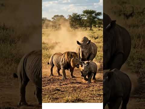 Lion Attacks Baby Rhino… But Mom Fights Back!