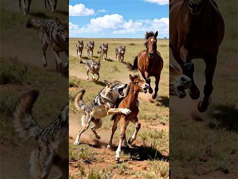 A Mother's Fury: Horse's Incredible Revenge on a Wolf#AnimalFight #MothersLove #rescue ##wildlife