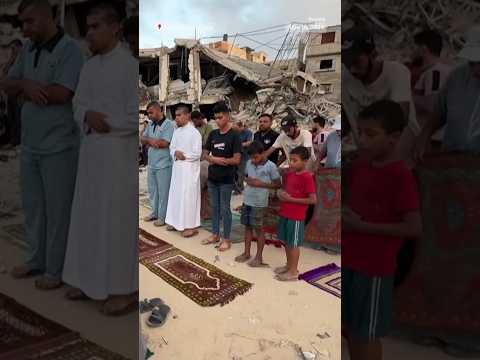 Palestinians in southern Gaza held Eid al-Adha prayers among the ruins of destroyed buildings.