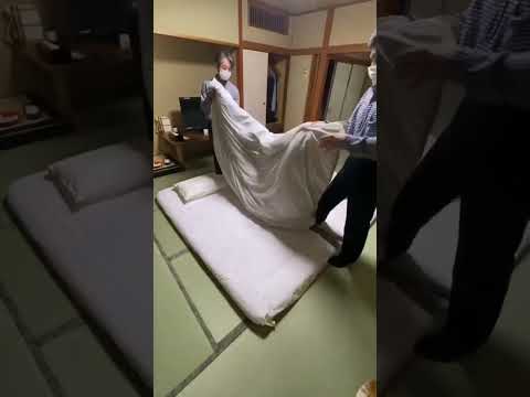 Setting up our futons at the ryokan. It was a comfortable sleep - warm and cozy! #Japan