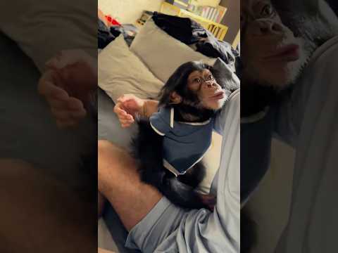 Every morning, Kiky the chimp needs a hug before breakfast! 🥰🙈❤️