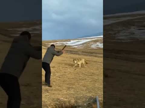Huge Wolf Sneaks up and Attacks Dog!