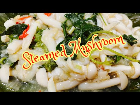 Steamed mushroom in banana leaves