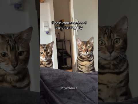 One cat is concerned, the other seems rather guilty 😹❤️ #cat #catshorts #catvideos #funnycats
