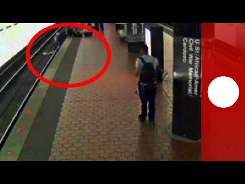 Dramatic train-track rescue captured on video