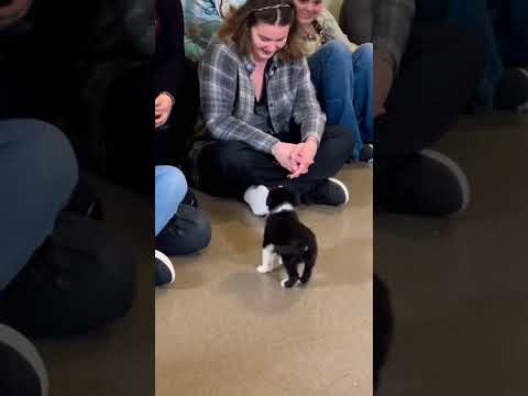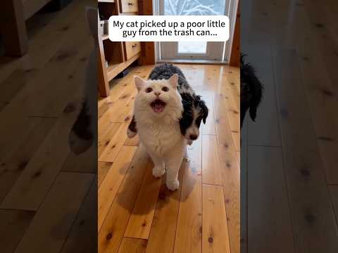 My cat found a baby Border Collie in the trash.#animals #rescue #cat #dog #shorts