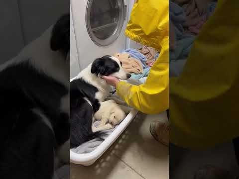 The stray border collie rescued the golden retriever puppy #viral #trending #short