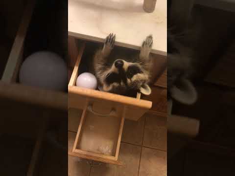 Raccoon closes herself into the drawer ☺️