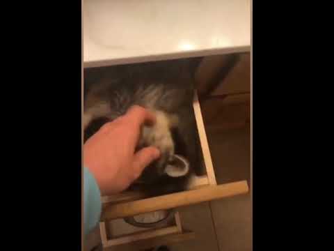 Biscuits the Raccoon Chills in Kitchen Drawer || ViralHog