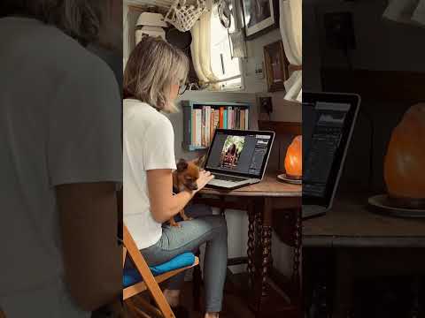 My narrowboat office - Editing photography in my tiny home with a chihuahua (bliss) 📷⚓️