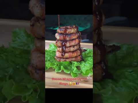 Bacon-Wrapped, Cheeseburger-Stuffed Onion Rings with Maple BBQ Sauce 🫡