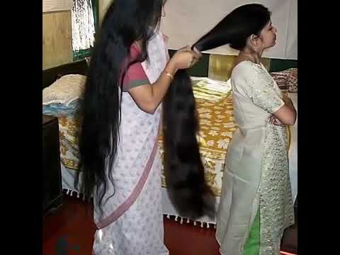 Long hair hard pulling by two woman