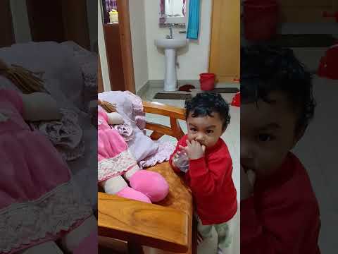 Alina feeding water to doll