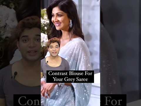 Contrast Blouse For Grey Saree 🔥🥵🥵 #shorts #youtubeshorts #fashion