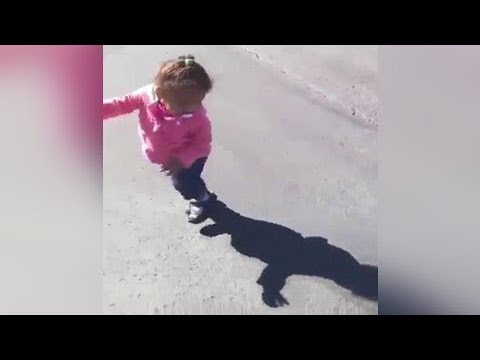 Terrified little girl hilariously tries to escape her shadow