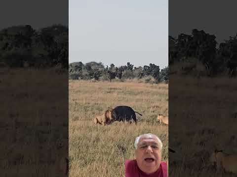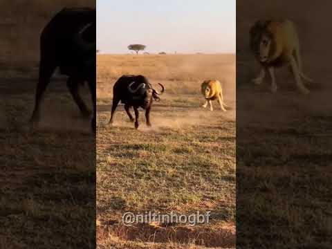 Leões brincando de caça com Búfalo! Isso vai acabar mal! #wildlife #animals #lion #leão #búfalo