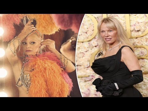 Pamela Anderson styles herself in classic black gown for the 2025 Golden Globes red carpet