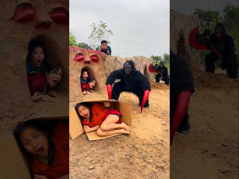 2 Ferocious Gorilla Monsters Attack 3 Beautiful Brave Girls And A Young Man Screams In Fear