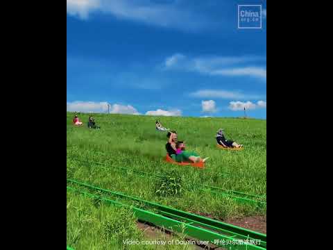 Thrilling Grass Sliding Adventure in Hulunbuir - Asia's Longest! 沉浸式体验大草原1200米滑草