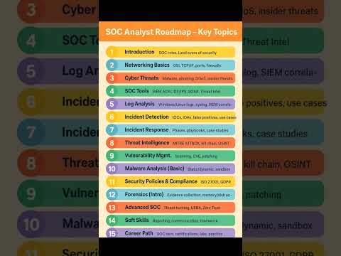 SOC Analyst Roadmap - Key Topics #cybersecurity #networking #shorts