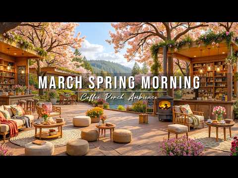 Peaceful March Spring Morning 🌸 Cozy Lakeside Coffee Porch Ambience & Soft Jazz Music for a Good Day