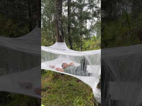 SOLO CAMPING HEAVY RAIN WITH PLASTIC WRAP - RELAXING CAMP - AMAZING BUSHCRAFT TENT #shorts