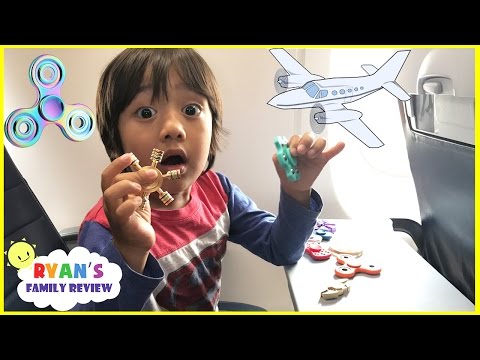 Ryan on the Airplane going to DisneyLand and open toys surprise eggs