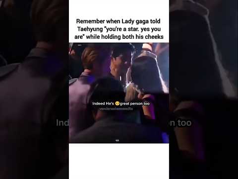 kim taehyung being a big fan of ladygaga,approaches her first to take pictures#kimtaehyung #ladygaga