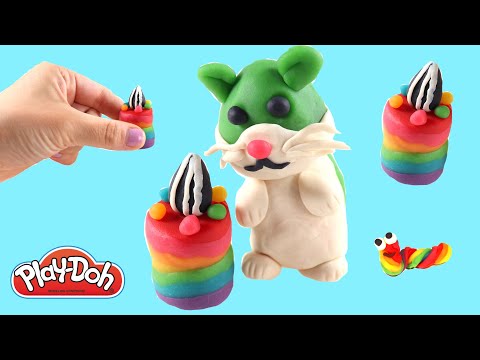 Play Doh Miniature Rainbow Cake for Hamster! Fun and POP DIY Play Dough Arts and Crafts.