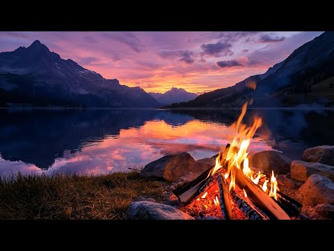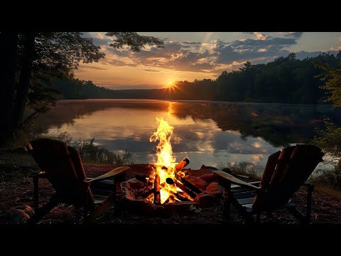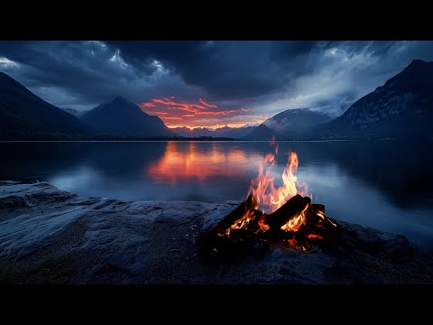 Tranquil Fire Sounds 🔥 Cozy Bonfire by the Lake for Sleep