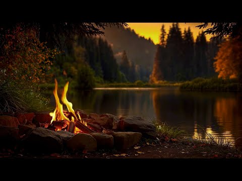 🍂🔥 Crackling Fire by the Lake (12 hrs): Cure for Deep Sleep in 4K 🌅