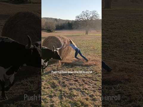 Roll out hay bales with us and the longhorns! #ditl #ranchlife #how #diy