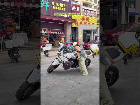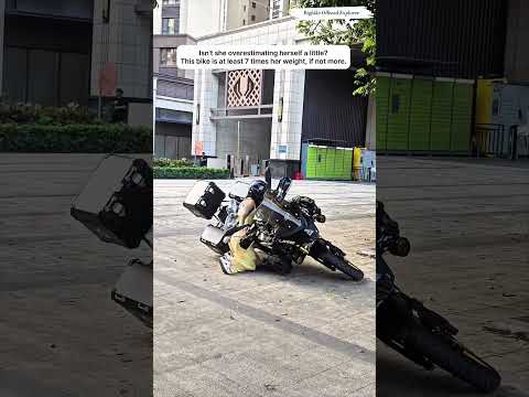 Tiny girl vs. 660lb Bike... The ending is INSANE! 666! 👏 #shorts #biker #unbelievable #funny